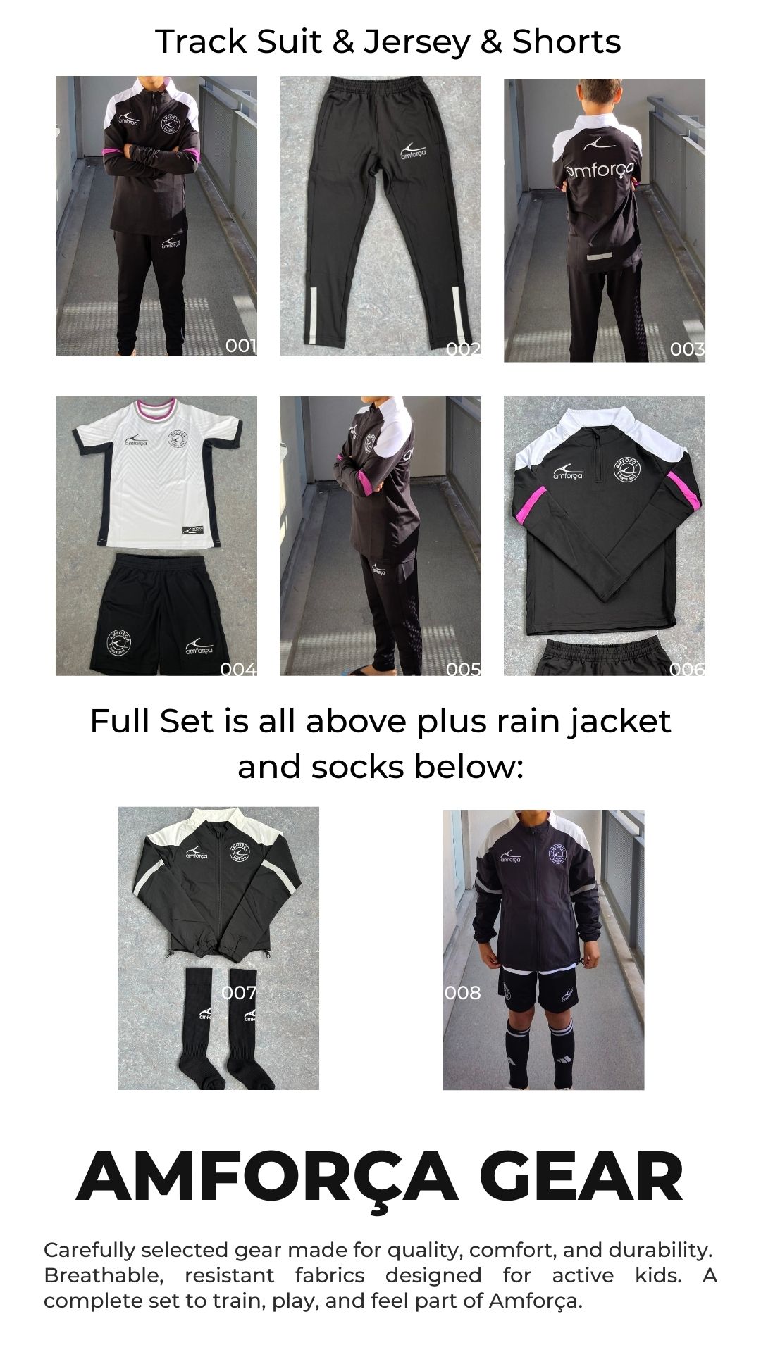 From September 2025, the children of Amforça at our own locations will receive a high quality Amforça Set, which consists of a track suit, a jersey and shorts. Football Academy participants will also receive socks and a wind/rain jacket for the Dutch weather, so that the parents never have to worry again about, which are the proper clothes for the training sessions.